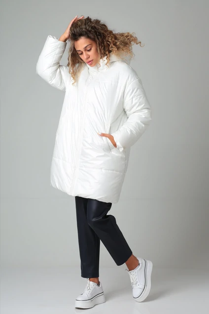 Удлиненная, стеганная, куртка с капюшоном, в стиле «Oversize». Застежка на молнию. Рукав на спущенной пройме, с потайной, эластичной, манжетой. По переду прорезные карманы с листочкой.Утеплитель FeelGood 200г на 1м . Кв. Подкладка ветроащитная мембрана "Барьер". Демисизон.Темературный режим +5 - -10 Длина 81 см, рукав от горловины 72 см.