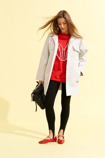 Парка женская из хлопковой костюмной ткани прямого силуэта, со спущенным плечом, длиной ниже линии бедер, с центральной бортовой застежкой на петли и пуговицы, на подкладке. Полочки с 2мя совмещенными накладными верхним с клапаном и нижним карманами. Спинка со средним швом. Рукав втачной двухшовный. Воротник отложной с отрезной стойкой.