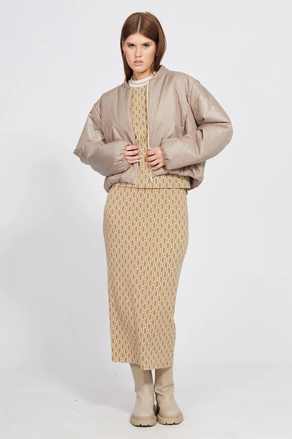 Куртка выполнена из плащевой ткани, утепленной изософтом. Куртка О-образного силуэта, длиной выше линии бедер. Спереди застежка на молнию. Карманы в рельефах, застегивающиеся на потайную молнию. Спинка цельная. Плечевой шов спущен. Воротник-стойка. Рукав рубашечного покроя, двухшовный. Низ рукава и низ куртки на эластичной тесьме. Куртка на притачной по низу подкладке.