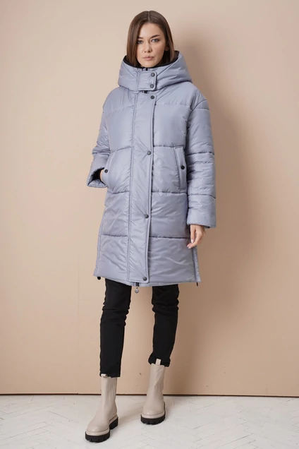Стеганые вещи - один из главных трендов осени 2021. Стеганое пальто всегда становится самым любимым приобритением. Оно легкое, удобное, а главное - теплое. Свободный покрой со слегка заниженной линией плеча, рукав на трикотажной манжете внутри. Полочка с центральной застежкой на тесьму-молнию, закрытая планкой на кнопках, прорезными карманами с листочками. По боковым швам разрезы на молниях. Модель с глубоким удобным капюшоном. Длина куртки около 92 см. Длина рукава с плечом около 74 см.