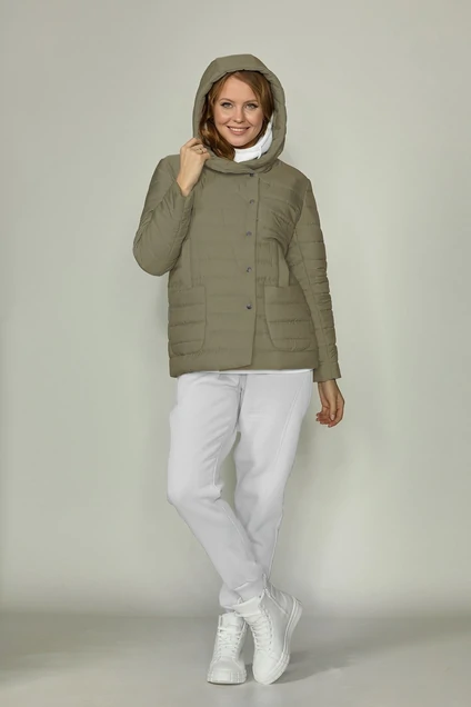 Куртка из плащевой ткани с подкладкой на синтепоне. Перед с карманами втачными и настрочными. Спинка цельная без швов. Особенно удобный капюшон с цельнокроеным воротником-стойка. Рукав двухшовный. Куртка на сквозных кнопках.