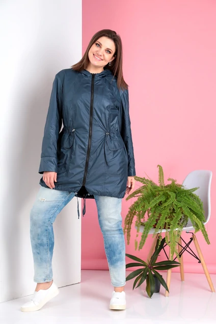 Куртка женская, свободного прямого силуэта. Длина до середины бедер. Застежка центральная на разъемную тесьму-молнию.