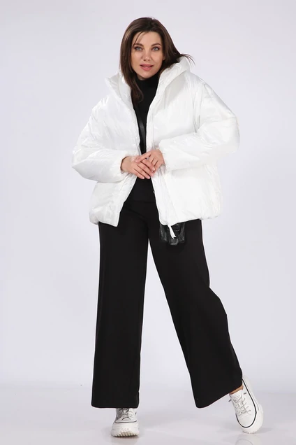 Демисезонная курткам оверсайз из плащевой ткани на утеплителе "FeelGood" 150г./метр кв., свободного силуэта с капюшоном на стойке, по полочке какетка со складкой и вертикальным декоративным падрезом. В боковых швах карманы. По низу регулируемая кулиска. Рукав на спущенной пройме. Застежка молния. Демисизон.Темературный режим от +5 до -5 длина изделия по спинке - 68 см. длина рукава от горловины- 78 см.