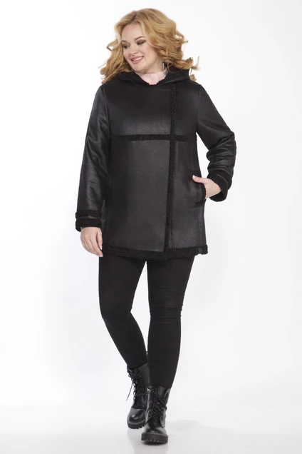 Куртка женская из полотна дубленка, прямого силуэта с капюшоном. Рукав втачной. Застежка ассиметричная на молнию. Швы притачивания кокеток, частей рукава выполнены мехом на лицо. В рельефе полочки карманы с листочкой. Низ куртки и низ рукава подшит мехом на лицо.