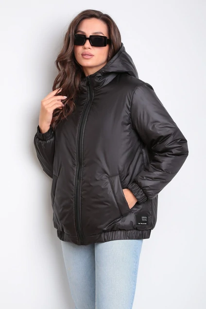 Куртка    утепленная  (микрофайбер  150гр/м2) на подкладке свободного  кроя с  капюшоном. Застежка центральная на молнию. Спинка с кокеткой и центральным швом. Рукав  втачной, одно шовный,  низ рукава с притачной манжетой на резинке. По переду прорезные карманы с листочкой. Низ куртки с притачной манжетой со сборкой на эластичную ленту.  Рассчитано на температурный  режим  до  -5  (указанная температура комфорта может зависеть от индивидуальной восприимчивости к холоду). На модели куртка 46 размера (параметры модели ОГ-90см ОТ-71см ОБ-102см рост -173см)