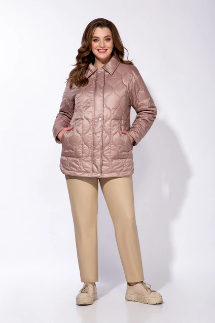 Куртка выполнена из стеганой плащевки на подкладке . Утеплитель ISOSOFT 100 г/м2 (весна). Куртка прямого силуэта, с втачными рукавами, с втачным воротником, с центральной застежкой на тесьму-молнию и 3 кнопки на планке. На деталях переда куртки обработаны карманы с листочками с втачными концами. Рукава втачные двухшовные, с притачными манжетами с застежкой на 1 кнопку. Воротник отложной с острыми концами. Низ куртки фигурной формы.