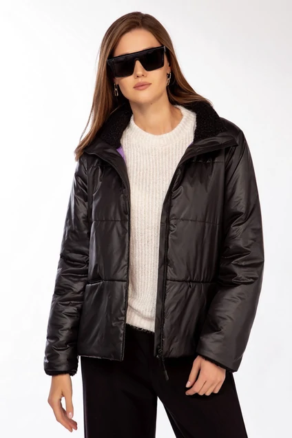 Базовая теплая куртка прямого силуэта, на подкладке выполнена из плащевки, и яркой подкладки. Утеплено наполнителем ИЗОСОФТ. С центральной застежкой на тесьму-молнию, с втачным воротником. Спереди карманы с застежкой на потайную молнию. Рукава втачные двухшовные, с передним и локтевыми швами. Низ рукавов обработан обтачкой из отделочной ткани. Вырез горловины куртки «под горло», с втачным воротником-стойкой, нижний воротник и манжеты выполнены из отделочной ткани"каракуль". Длина спинки – 66см.
