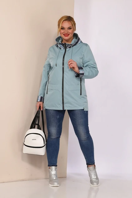 Контрастная отделка в клетку на отвороте низа рукавов и капюшона перекликается с расцветкой с изнаночной частью ветровки.