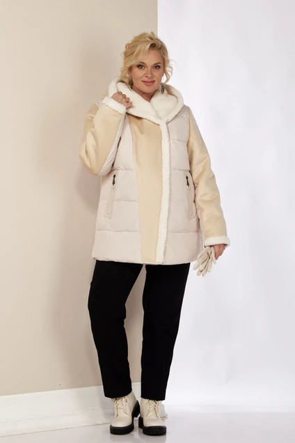 Очень необычная стильная куртка из нежной приятной ткани, выстеганной на высококачественном утеплителе Био-пух, который легко восстанавливает форму и не теряет ее после многочисленных стирок. Изделие свободного покроя. Рукав втачной, с трикотажной внутренней манжетой. Застежка смещенная на тесьму-молнию по косой. В передней части куртки функциональные карманы на молнии. Подборт, капюшон и низ рукава отделан искусственным мехом «мутон», который придает изделию оригинальность. С внутренней стороны куртки имеется внутренний карман. По спинке декоративная кокетка. Низ изделия на регулируемой кулисе, что позволит сохранить тепло в холодное время года. Стильная куртка подойдет на любой возраст и под любой стиль одежды. Модель полномерная, с идеальной посадкой.