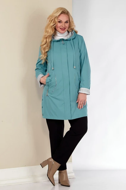 Современный, модный, легкий плащ-куртка. Изготовлен из плащевой ткани, без утеплителя, на подкладке. Достаточно плотная плащевка, при этом довольно мягкая. Капюшон изделия втачной, регулируется декоративным шнуром. Застежка центральная на молнии (двухбегунковая) с планкой на кнопки. Рукав втачной длинный с манжетой. По переду рельефы входящие в карман. Карманы прорезные с декоративным элементом. В боковых швах разрезы с отделкой и действующими кнопками. Спинка с рельефными швами. Капюшон и манжеты декорированы отделкой.