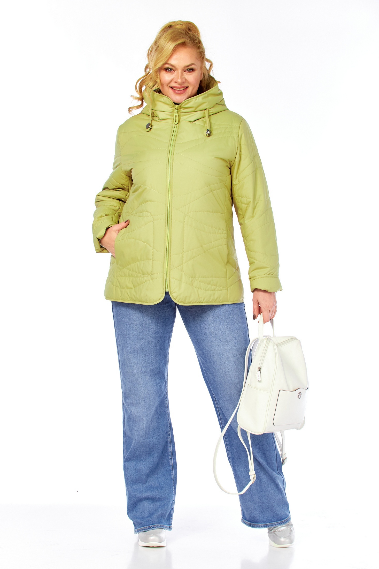 Куртка 2211 фисташковый Shetti — идеальный выбор для демисезонного гардероба. Коллекция бренда Shetti предлагает куртку из 100% полиэстера, обеспечивающую защиту от ветра и влаги. Утеплитель био-пух плотностью 100 г/м² сохраняет тепло при температуре от -5° до +15°C. Куртка имеет слегка приталенный силуэт с центральной застежкой на молнии и боковыми карманами на магнитных кнопках. Не съемный капюшон регулируется декоративным шнуром для дополнительного удобства. Низ изделия с закругленными бортами и кулисой, что позволяет регулировать посадку. Длина по спинке составляет 73 см, а длина рукава — 63 см. Нежный фисташковый цвет добавляет свежести вашему образу в прохладную весну и осень.Размер модели на фото: 56. Рост модели на фото: 170 см. Прилагается таблица замеров, а также таблица для правильно определения своего размера (ВАЖНО! все изделия измеряются по внешней стороне и при выборе размера учитывайте толщину утеплителя, в таблице с замерами ). Обращаем Ваше внимание, что цвет изделия может не на 100% соответствовать фото. Это во многом зависит от освещения во время фотосъемки и цветопередачи Вашего дисплея.