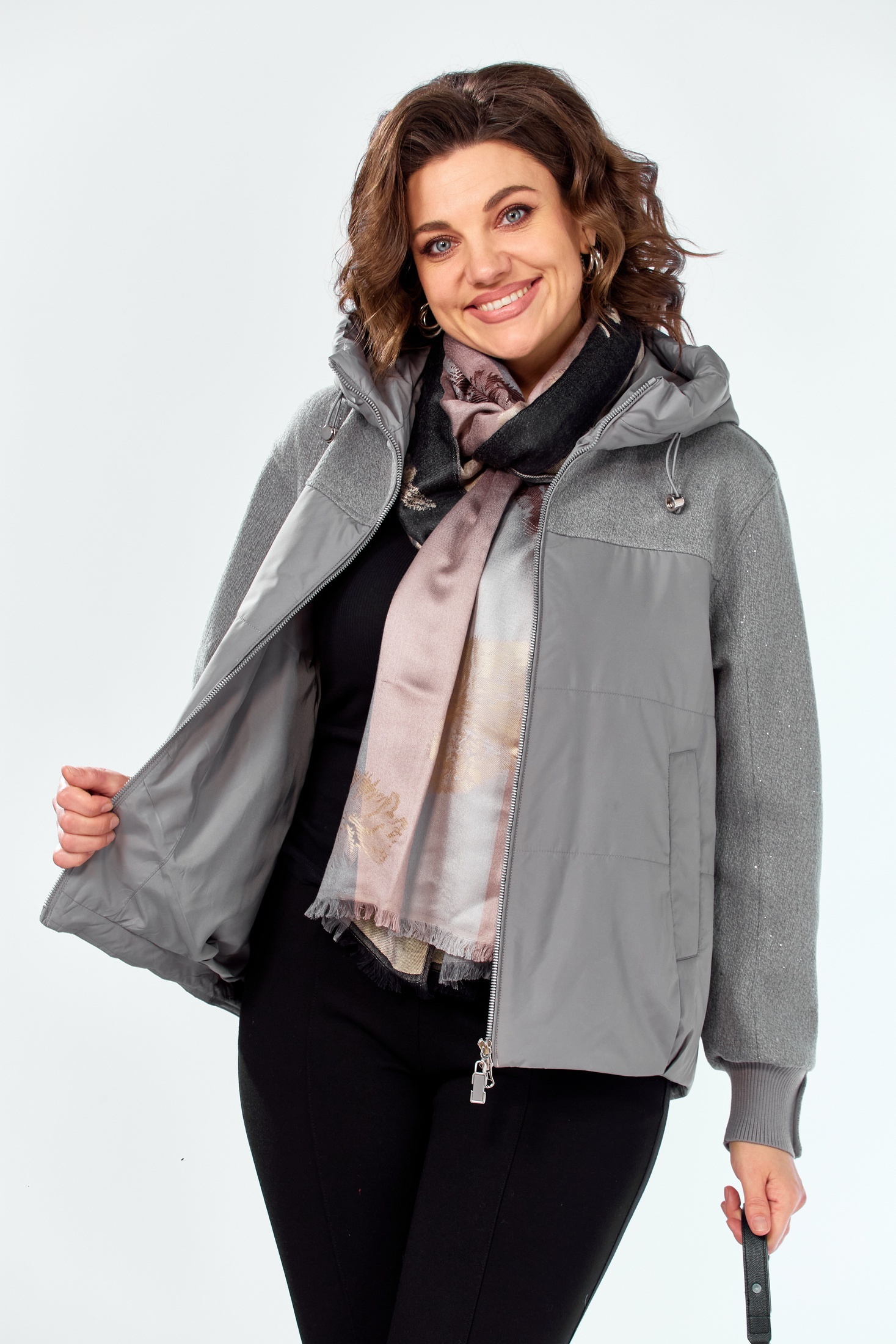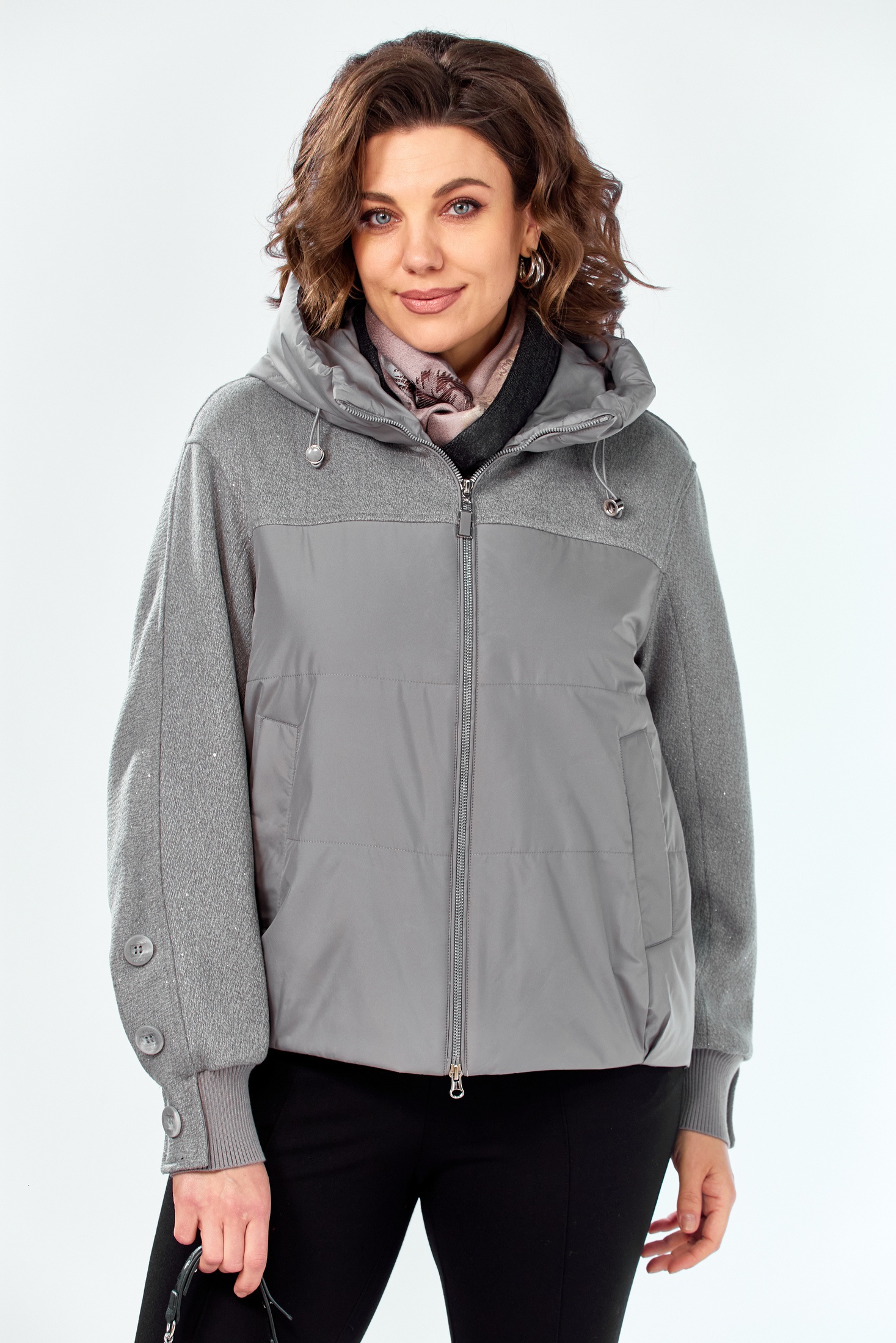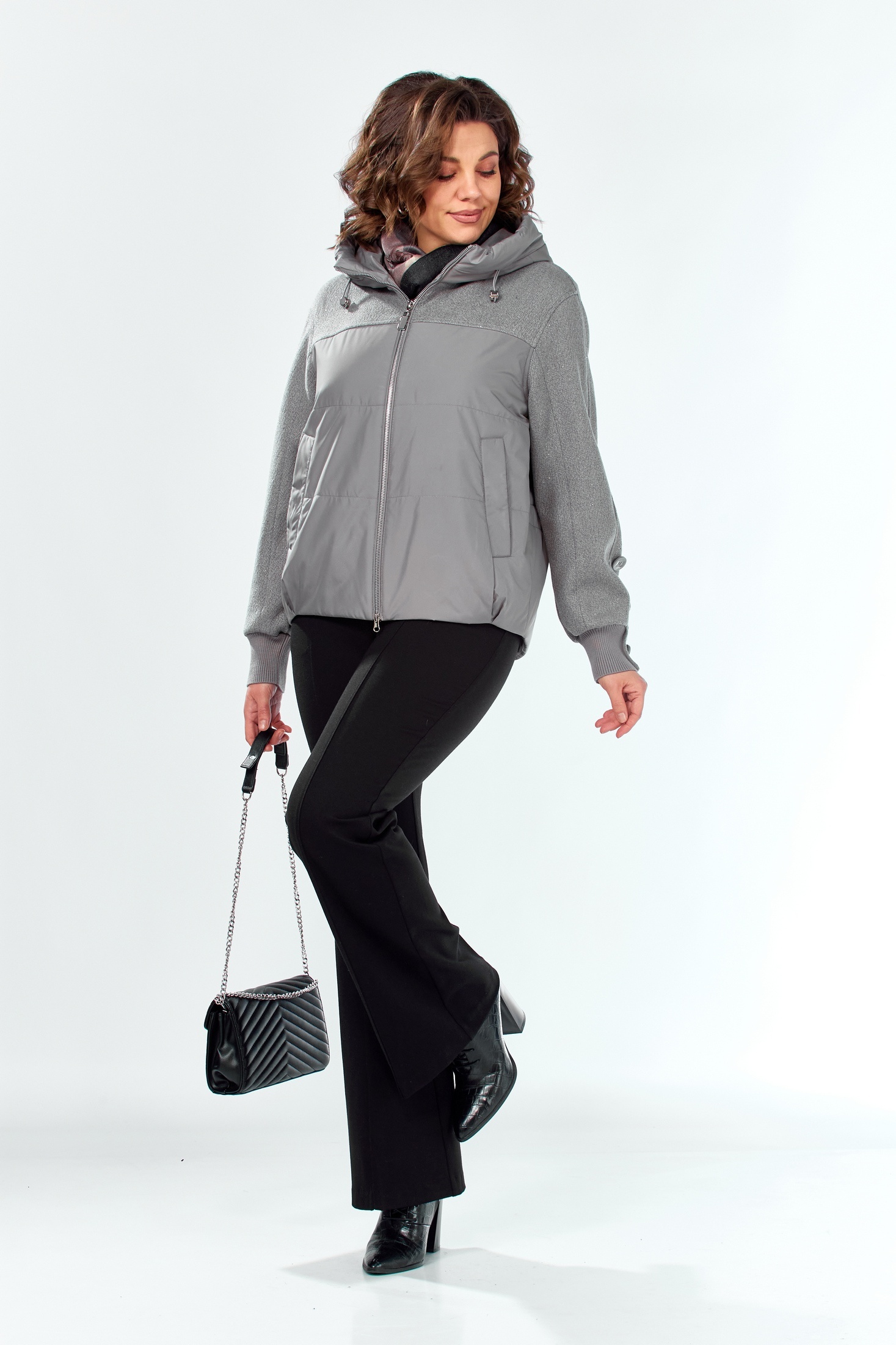 Куртка 2212 графит Shetti — идеальный выбор для межсезонья. Коллекция бренда Shetti предлагает эту женскую куртку прямого силуэта из полиэстера с утеплителем плотностью 100 г/кв. м, который сохраняет тепло без утяжеления. Центральная двухбегунковая молния и несъёмный капюшон с кулисой обеспечивают защиту от ветра. Декоративная твидовая кокетка придаёт оригинальность, а прорезные карманы на магнитных кнопках удобны для использования. Рукава длиной 76 см с манжетами и пуговицами дополняют стильный образ. Спинка куртки длиннее переда на 11 см (длина по спинке 65 см, по переду 54 см), что делает её практичной для активного городского ритма. Цвет графит прекрасно сочетается с любой одеждой, а куртка подходит для температур от -5° до +15°С. Прилагается таблица замеров, а также таблица для правильно определения своего размера (ВАЖНО! все изделия измеряются по внешней стороне и при выборе размера учитывайте толщину утеплителя, в таблице с замерами ). Обращаем Ваше внимание, что цвет изделия может не на 100% соответствовать фото. Это во многом зависит от освещения во время фотосъемки и цветопередачи Вашего дисплея.