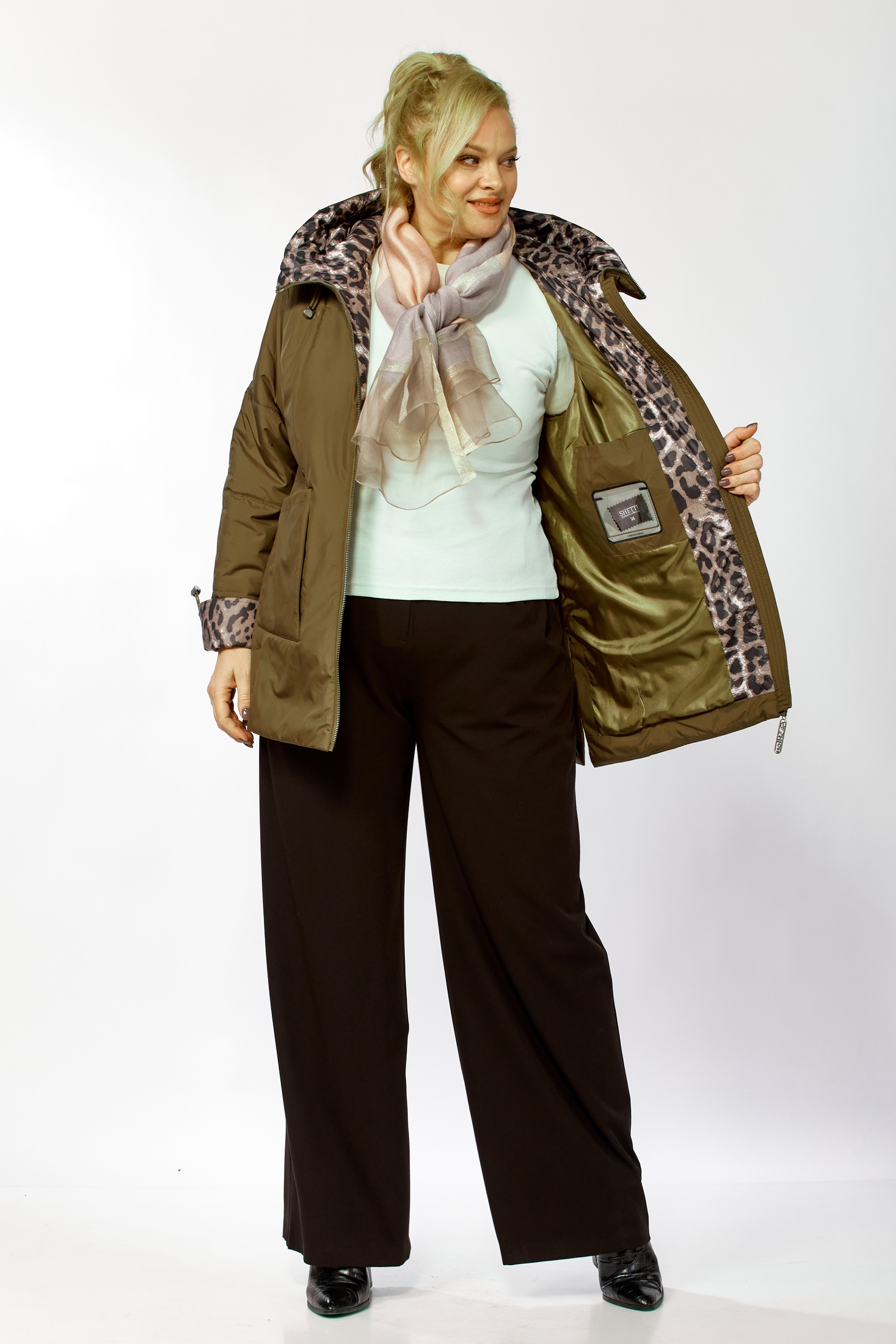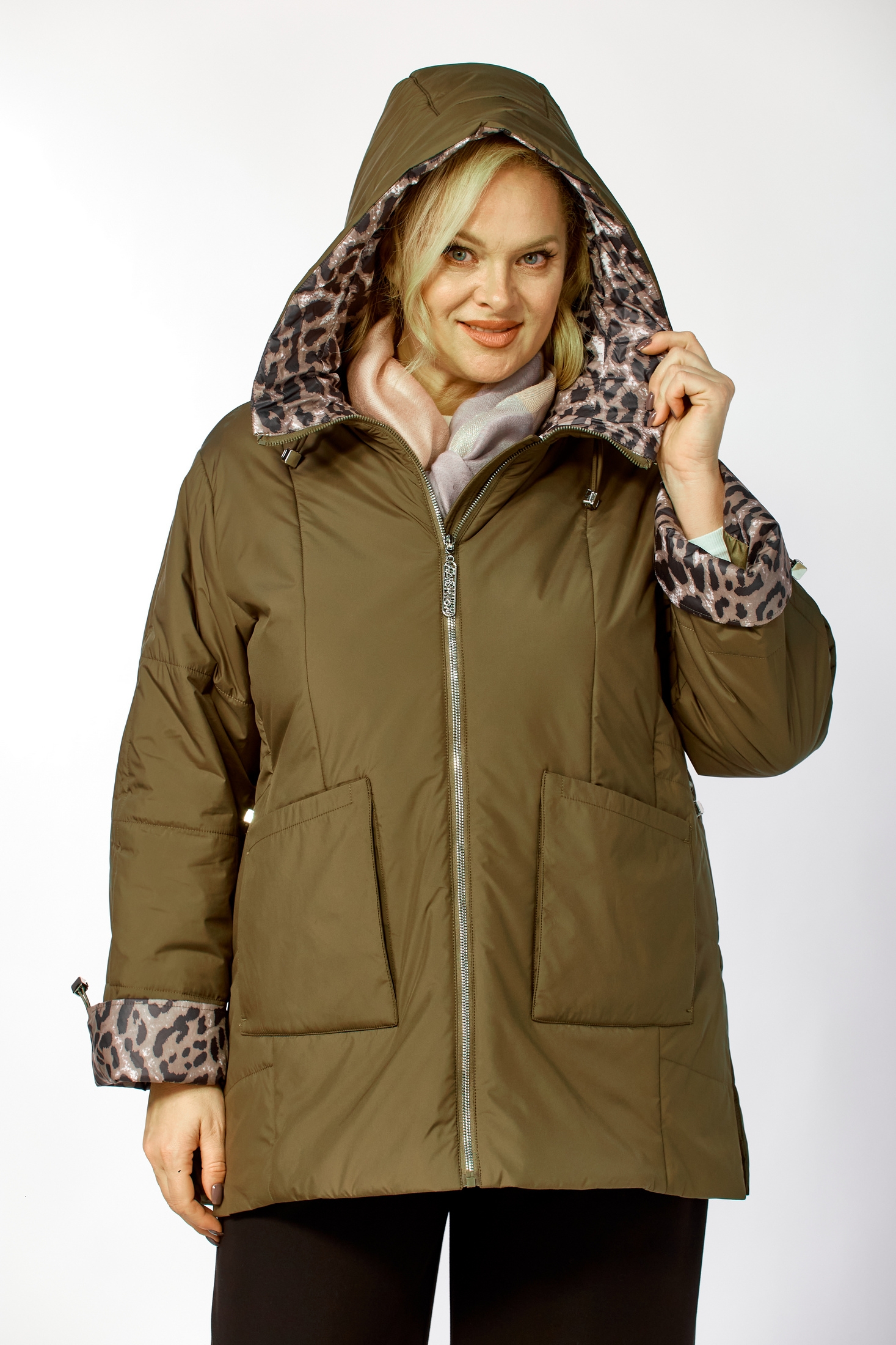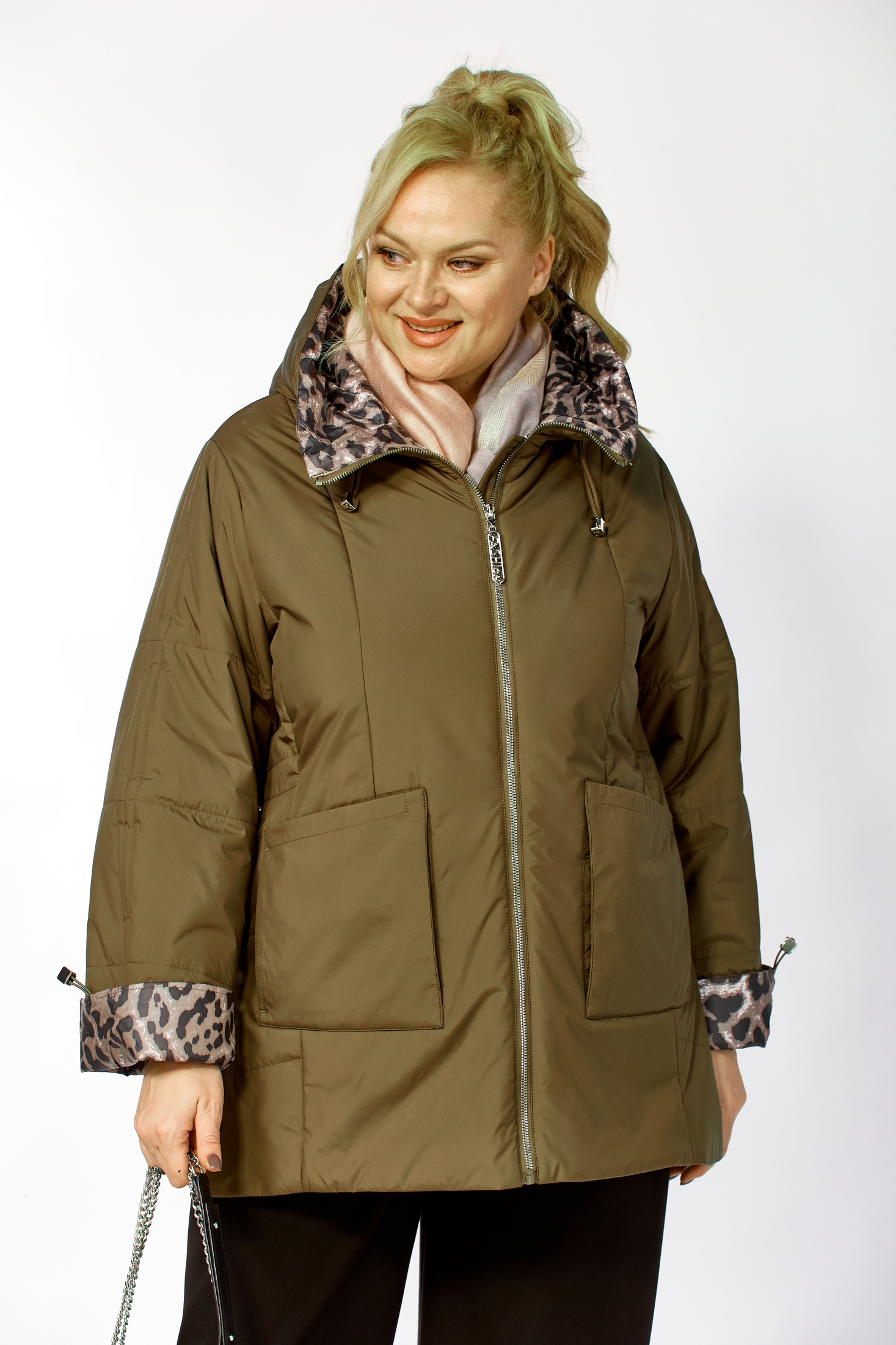Куртка 2215 хаки Shetti — идеальный выбор для осенних и весенних прохладных дней. Коллекция бренда Shetti предлагает комфорт и стиль в одном изделии. Прямой силуэт с расклешённым к низу фасоном выполнен из мягкой матовой ткани с водоотталкивающей пропиткой. Молния с декоративной подвеской и глубокий капюшон, регулируемый шнуром, создают удобство в носке. Утепленная подкладка из синтепона обеспечивает тепло при температуре до +10°C. Длина изделия по спинке составляет 76 см, а рукав — 61 см, регулируется кулисой. Совмещая стильный хаки цвет и практичность, куртка имеет фигурный низ и боковые разрезы для легкости движений, а контрастная ткань придает оригинальность. Практичные накладные карманы завершают образ.