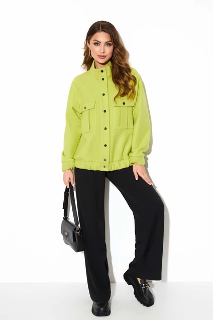 Короткая куртка из пальтовой ткани. Воротник-стойка, рукав втачной длинный. Низ самой куртки и низ рукава собирается на широкой резинке. Накладные карманы с клапанами на груди. Застегивается на кнопки. Куртка без подкладки.Длина куртки 64