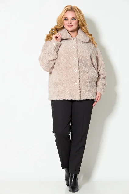 Уютная, объемная куртка из нежного фактурного трикотажного полотна с застежкой на пуговицы с воротником и наклонными карманами. Модные рукава на притачном манжете, углубленная пройма позволяет легко создавать актуальные комплекты с другими изделиями.