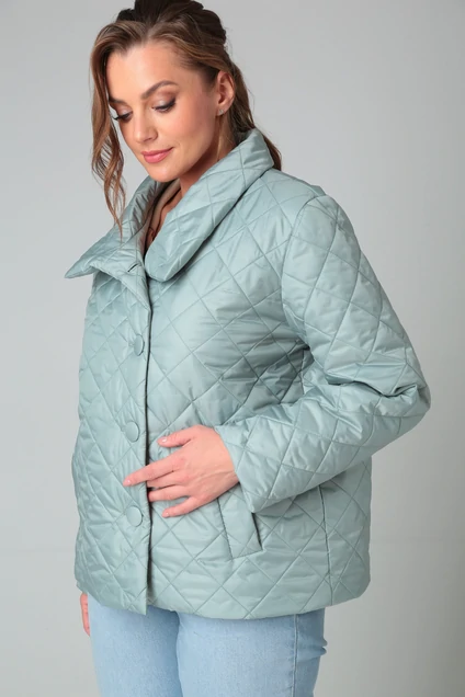 Куртка женская свободного кроя выполнена из стеганной плащевой ткани(на синтепоне). Воротник - высокая стойка. Рукав втачной. Спереди карман, листочка. Немного смещенная от центра, застёжка на петли-пуговицы.