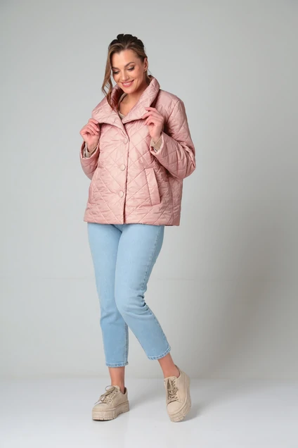Куртка женская свободного кроя выполнена из стеганной плащевой ткани(на синтепоне). Воротник - высокая стойка. Рукав втачной. Спереди карман, листочка. Немного смещенная от центра, застёжка на петли-пуговицы.
