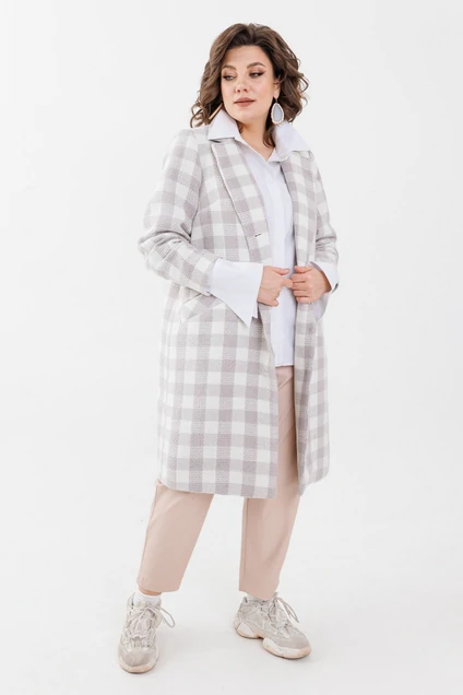 Пальто женское, полуприлегающего силуэта, длина за колено. Рукав втачной, двухшовный, длинный. По переду нагрудные вытачки, однобортная застежка на петли пуговицы, прорезные карманы, отложной воротник с лацканами. По спинке средний шов. Пальто на подкладке.