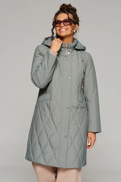Пальто выполнено из стёганной, достаточно прочной и приятной на ощупь влагостойкой, полиэфирной ткани; на синтетической подкладке. Лёгкий утеплитель из холлофайбера 150 г/м.кв.; подходит для холодной осени и весны. Изделие рассчитано на температурный режим от +5 до -10 градусов. Модель прямого силуэта, базового кроя; предназначена для повседневного использования. Передняя часть с отрезной кокеткой в верхней части и с двумя декоративными рельефами, в нижней части которых предусмотрены горизонтальные карманы, а также два дополнительных, вертикальных на молнии. Застежка центральная на декоративную молнию с ветрозащитной планкой снаружи, которая фиксируется на кнопки. Длина молнии от верхней части капюшона до нижнего края изделия. Спинка с двумя отрезными кокетками в верхней части и с двумя вертикальными рельефами. Рукав длинный, двухшовный, втачной. Капюшон притачной по линии горловины.