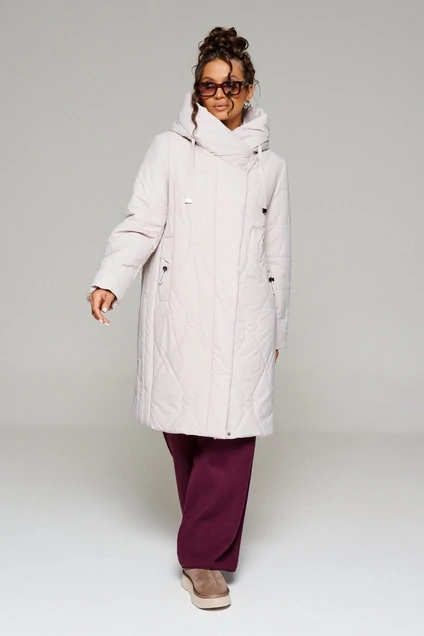 Пальто выполнено из стёганной, достаточно прочной и приятной на ощупь влагостойкой, полиэфирной ткани; на синтетической подкладке. Лёгкий утеплитель из холлофайбера 150 г/м.кв.; подходит для холодной осени и весны. Изделие рассчитано на температурный режим от +5 до -10 градусов. Модель прямого силуэта, базового кроя; предназначена для повседневного использования. Передняя часть цельнокроеная, с двумя прорезными карманами с листочкой, котрая фиксируется на внутренние кнопки. Застежка центральная на декоративную молнию с ветрозащитной планкой снаружи. Длина молнии от верхней части горловины до нижнего края изделия.