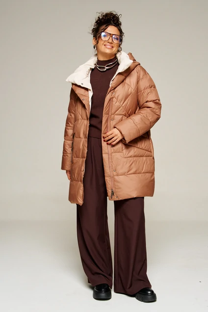 Современный объёмный крой и спущенная линия плеч создают расслабленный актуальный силуэт. А широкий воротник играет роль дизайнерского акцента.