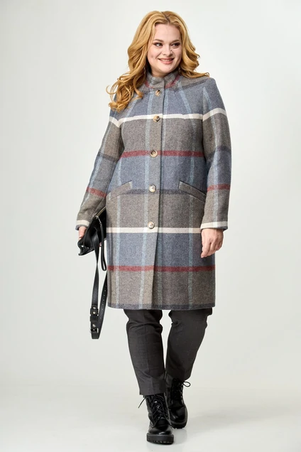 Пальто 786 синяя клетка БелЭльСтиль