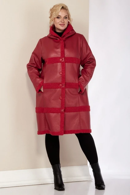 Полочка и спинка разрезные. В рельефе полочки обработаны карманы. Застежка центральная на петли и пуговицы. Дубленка с капюшоном. Рукав втачной одношовный. В модели есть прибавка на верхнюю одежду.