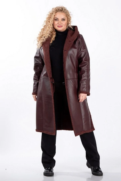 Полочка и спинка отрезные чуть ниже линии талии. В рельефе полочки обработаны карманы. Застежка центральная на петли и пуговицы. Дубленка с капюшоном. Рукав втачной двухшовный. В модели есть прибавка на верхнюю одежду.