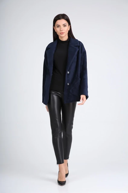 Полупальто женское, прямого силуэта, с центральной застёжкой на пришивные кнопки. С открытыми бортами. Линия плеча спущенная, рукав втачной 2-шовный. По переду накладные карманы. Воротник стояче-отложной. Полупальто на подкладке. В качестве отделки сипользуется фурнитура.Длина по спинке 68 см. , длина рукава 52 см.