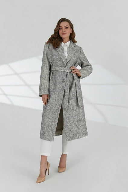 Пальто прямого свободного силуэта. Выполнено из высококачественной ткани, нежного пыльно-голубого цвета. Воротник классический, по переду на пуговицах, в комплекте съемный пояс. По бокам функциональные карманы. Рукав втачной. Пальто полностью на подкладке. Пальто - это отличный вклад в ваш гардероб. Оно будет выгодно смотреться под любой образ и любую обувь. Длина по спинке - 112 см. Длина рукава - 62 см
