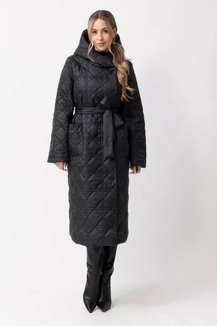 Пальто утепленное с центральной двубортной застежкой на пришивные кнопки, капюшоном. По переду- накладные карманы. Спинка цельная. Рукав втачной, двухшовный. Пальто со съемным поясом.