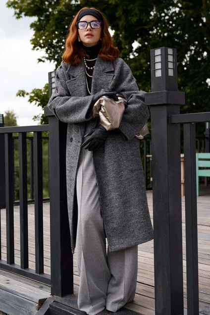 Длина пальто по спинке от высшей точки горловины: 117 см