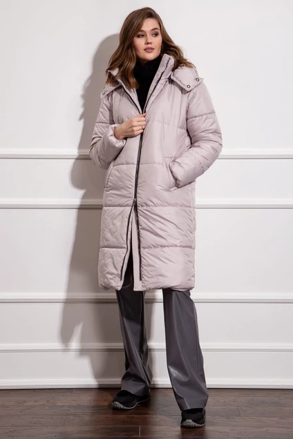 Стильное и теплое стеганое пальто из плащевой ткани на инновационном утеплителе синтепух, с застёжкой на молнию до верха, длиной за колено. Воротник стойка. Капюшон, отстегивающийся на молнии, с застежкой на кнопки спереди. Предусмотрены функциональные карманы с наклонными листочками.