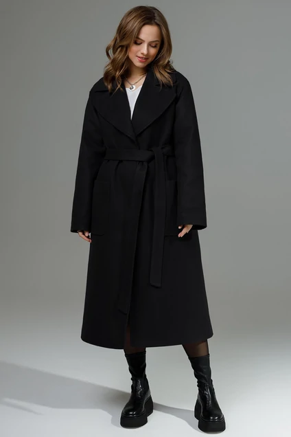 Пальто свободного силуэта с накладными карманами. Пиджачный воротник, втачной длинный рукав, центральная застежка на потайные кнопки. Пояс в комплекте. Пальто на утепленной подкладке.Длина пальто 118 см