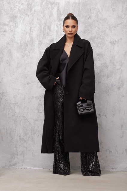 Модель One Size. Пальто объемной формы из плотной пальтовой ткани.
