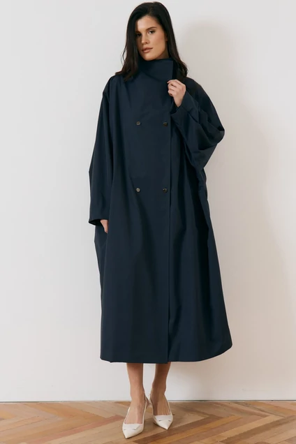 Тренч 3519-1 ATTIKA — идеальный выбор для ценителей стиля и комфорта. Коллекция бренда ATTIKA предлагает свободный силуэт, выполненный из костюмно-плащевой ткани, включающей хлопок и вискозу. Тренч оснащен воротником-стойкой и застежкой на кнопки, что добавляет ему практичности. Цельнокроеный рукав плавно переходит в широкую форму, а вертикальные прорезные карманы в швах придают модели функциональность. Этот демисезонный тренч на подкладке подойдет для повседневного использования в прохладные дни. Его темно-синий цвет прекрасно сочетается с различными аксессуарами и обувью, создавая стильный образ.