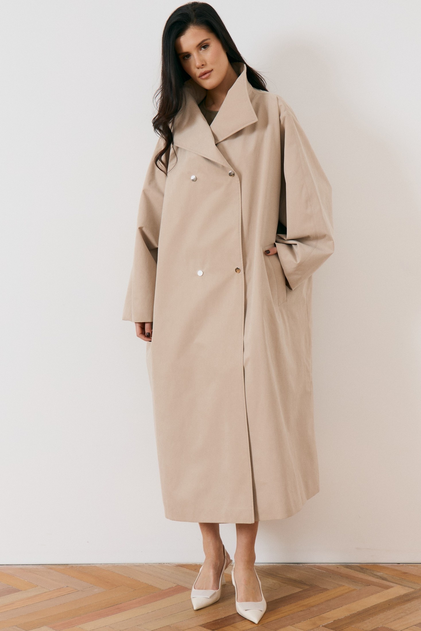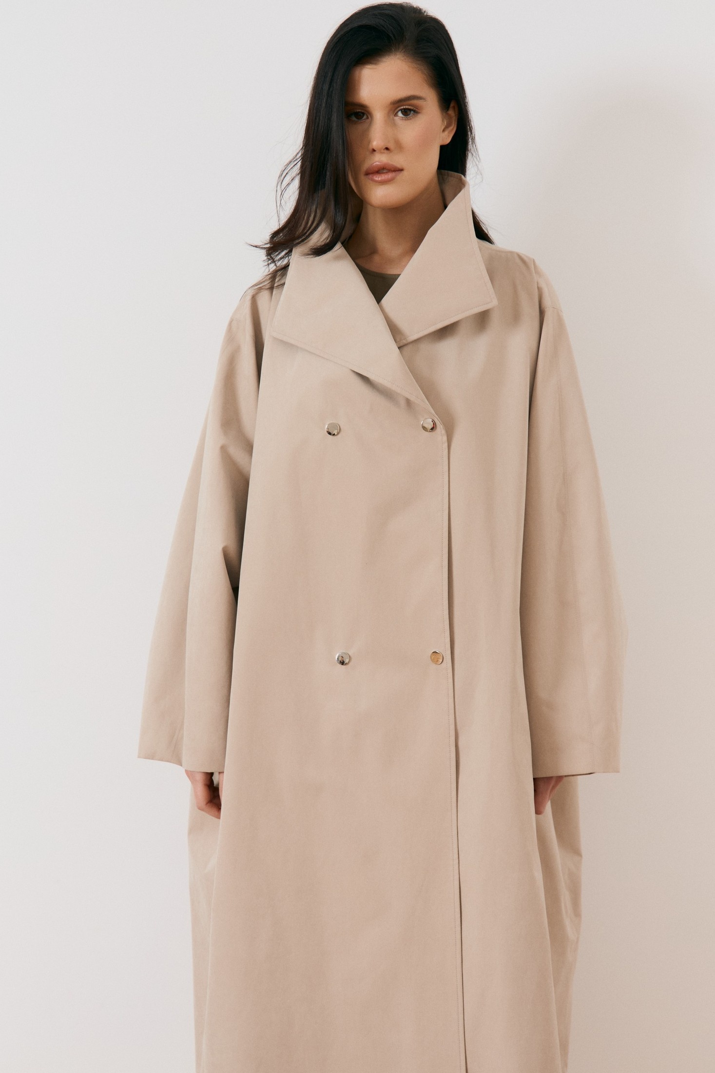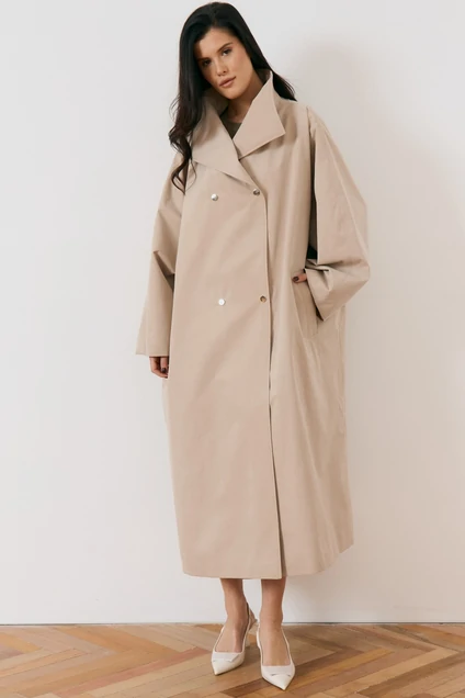 Тренч 3519 ATTIKA от коллекции бренда ATTIKA идеально впишется в ваш гардероб. Изготовленный из костюмно-плащевой ткани, содержащей хлопок и вискозу, он дарит комфорт и стиль. Свободный силуэт с воротником-стойкой и застежкой на кнопки придает изделию современный вид. Цельнокроеный рукав, переходящий в широкую форму, обеспечивает удобство в носке. Вертикальные прорезные карманы в швах добавляют практичности. Подкладка из полиэстера и вискозы делает его подходящим для демисезонного использования. Бежевый цвет тренча подчеркивает его универсальность и стиль. Идеально подходит для повседневных городских образов и офисных луков.