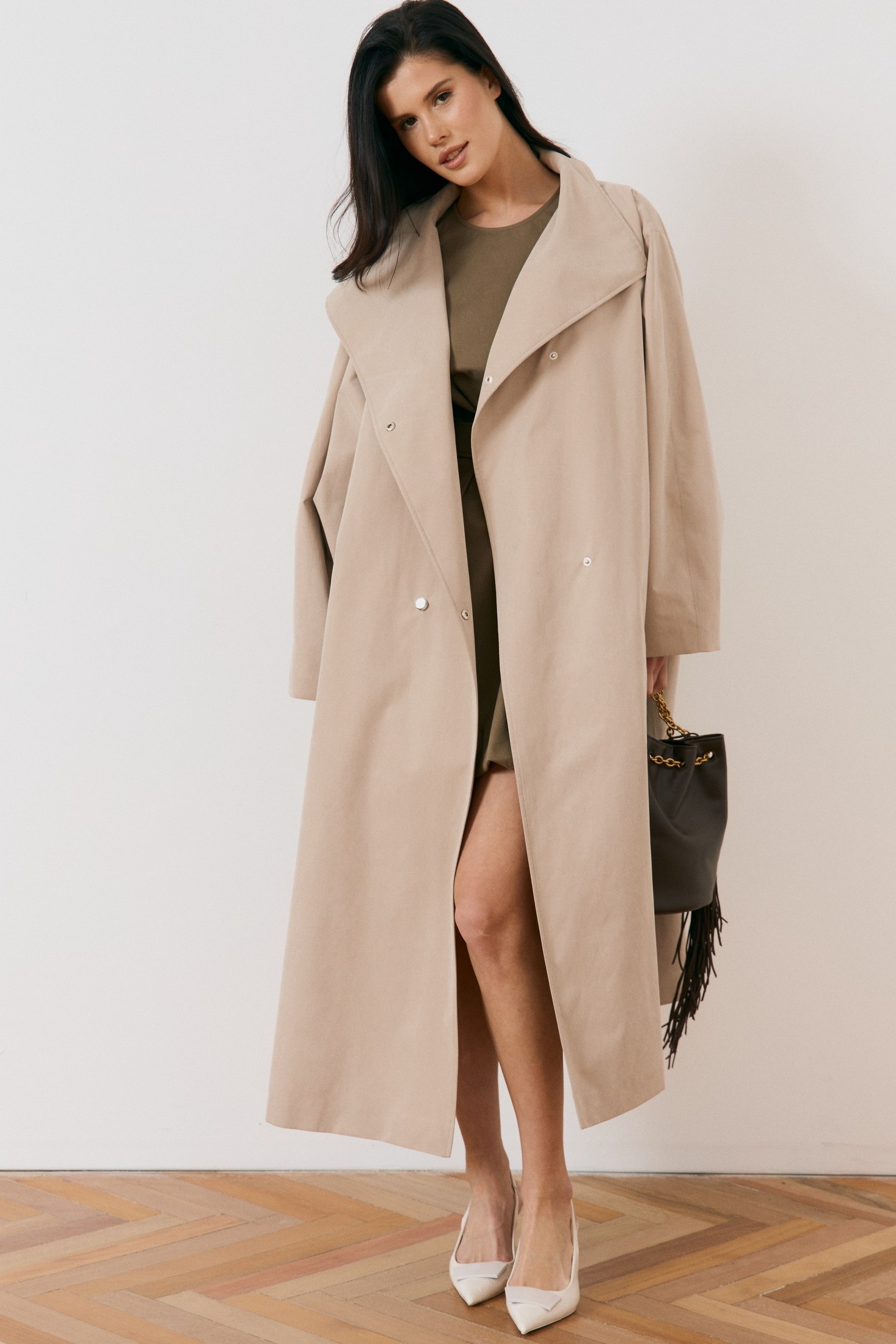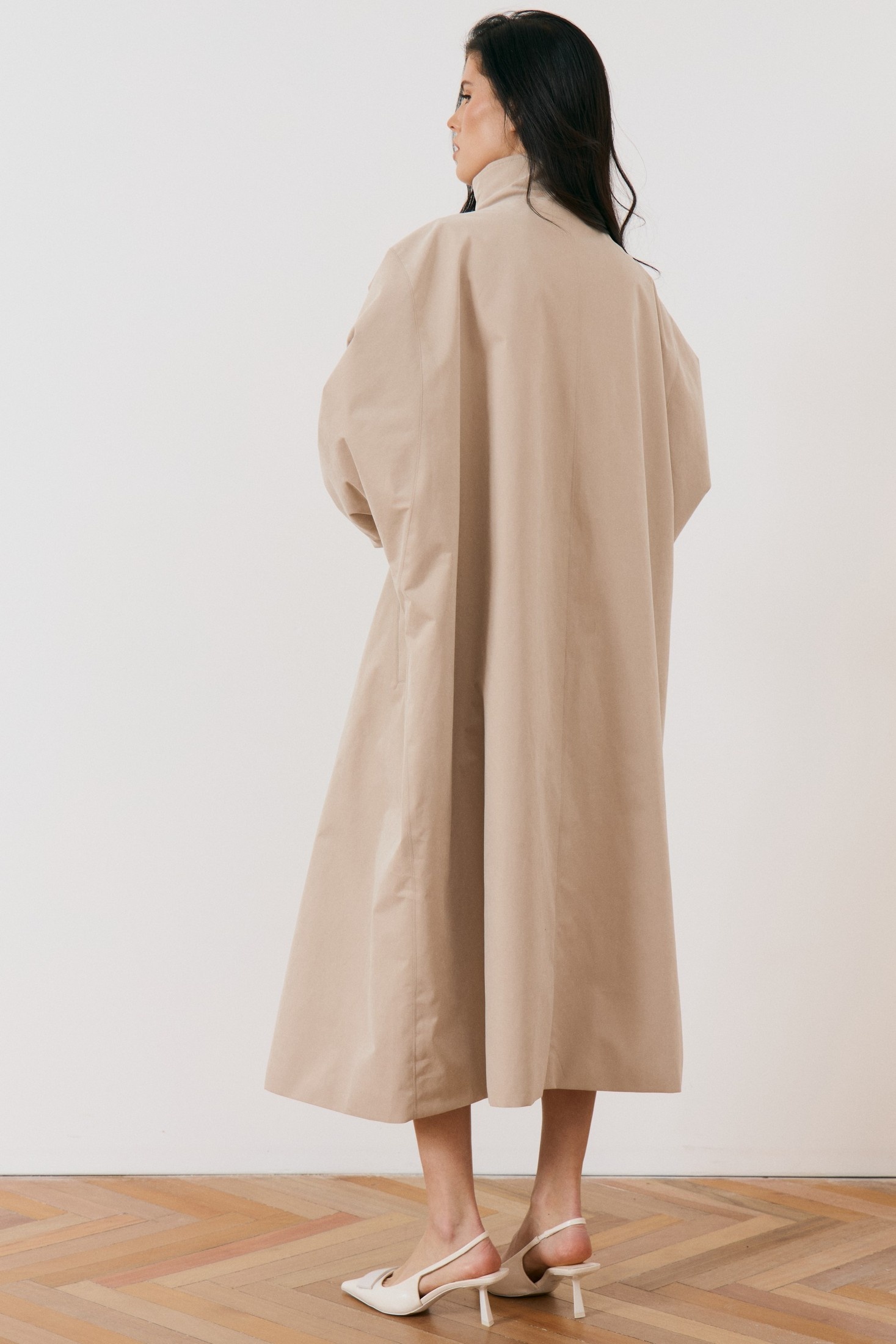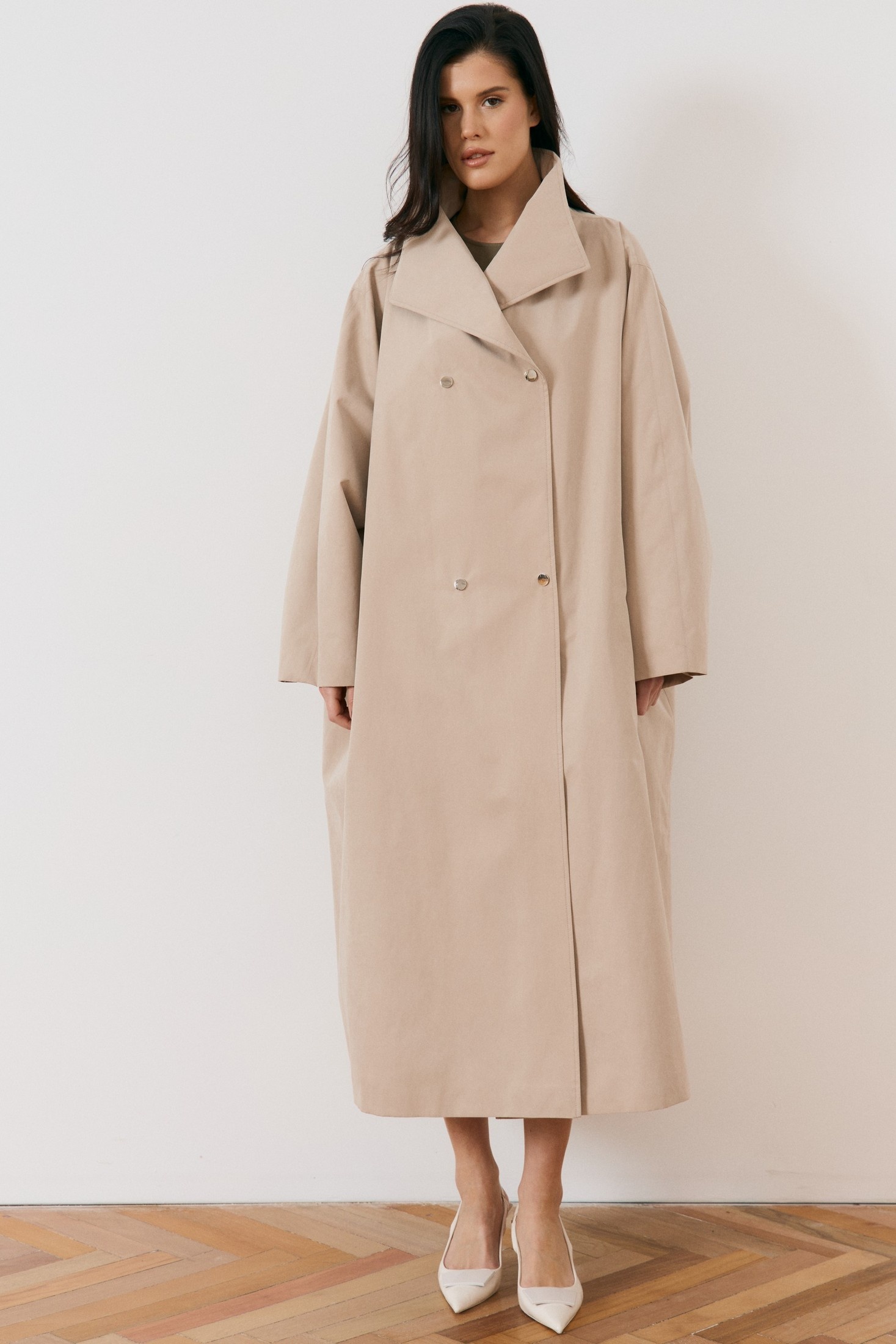 Тренч 3519 ATTIKA от коллекции бренда ATTIKA идеально впишется в ваш гардероб. Изготовленный из костюмно-плащевой ткани, содержащей хлопок и вискозу, он дарит комфорт и стиль. Свободный силуэт с воротником-стойкой и застежкой на кнопки придает изделию современный вид. Цельнокроеный рукав, переходящий в широкую форму, обеспечивает удобство в носке. Вертикальные прорезные карманы в швах добавляют практичности. Подкладка из полиэстера и вискозы делает его подходящим для демисезонного использования. Бежевый цвет тренча подчеркивает его универсальность и стиль. Идеально подходит для повседневных городских образов и офисных луков.