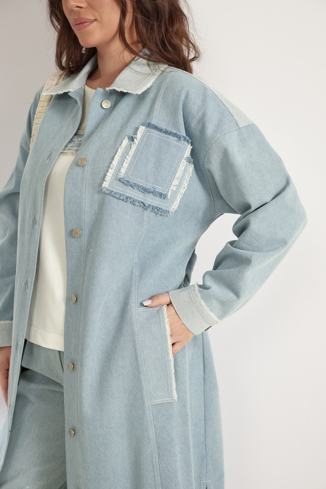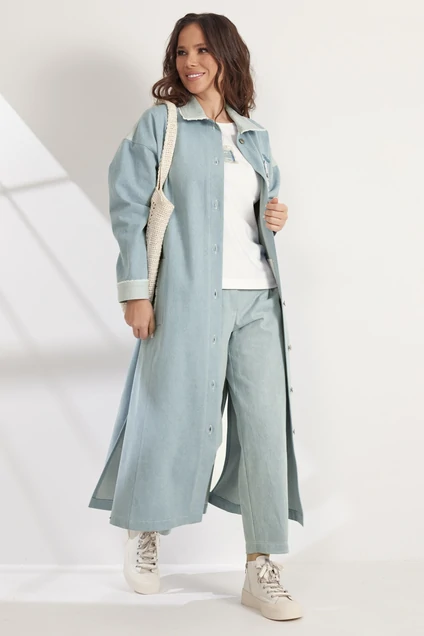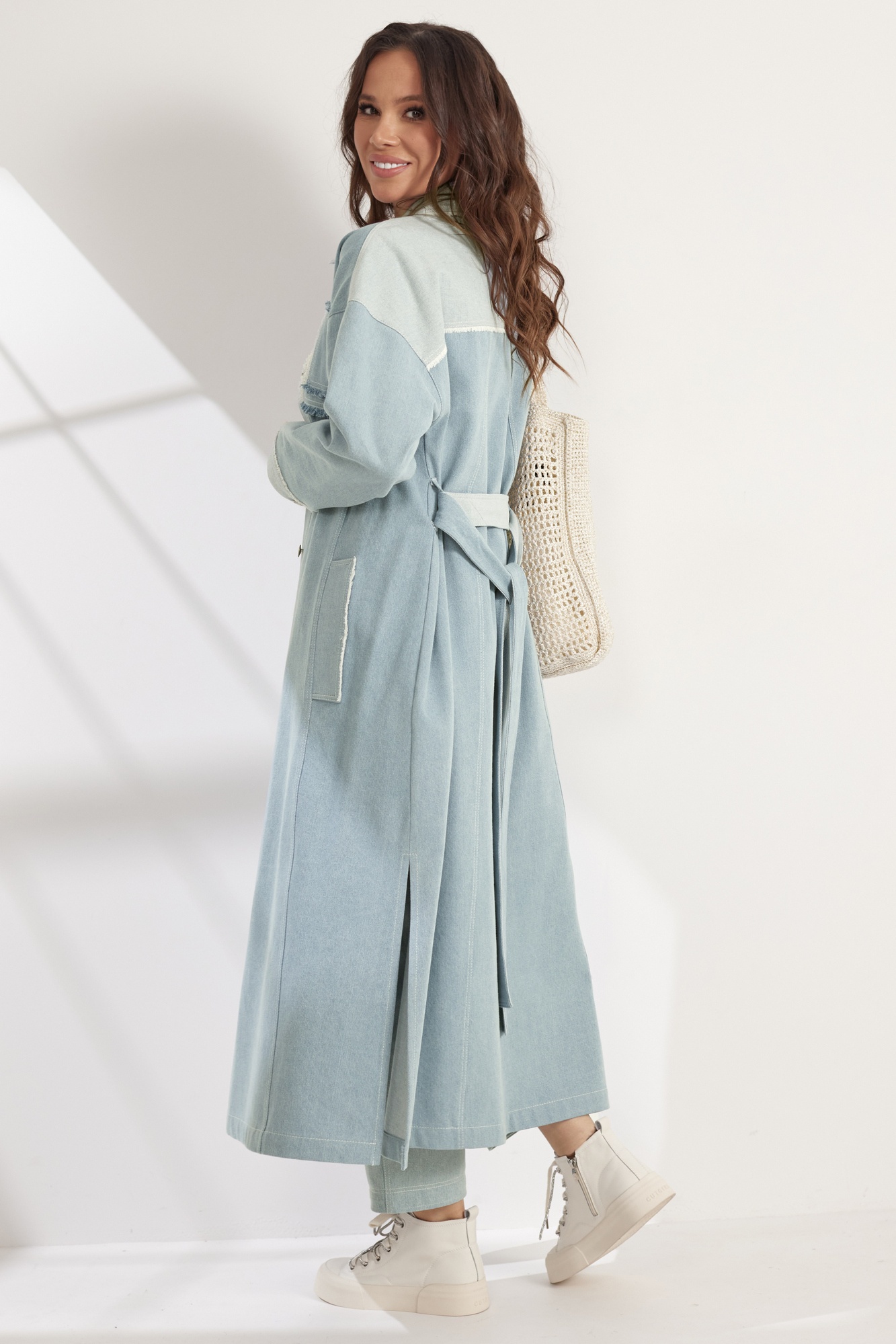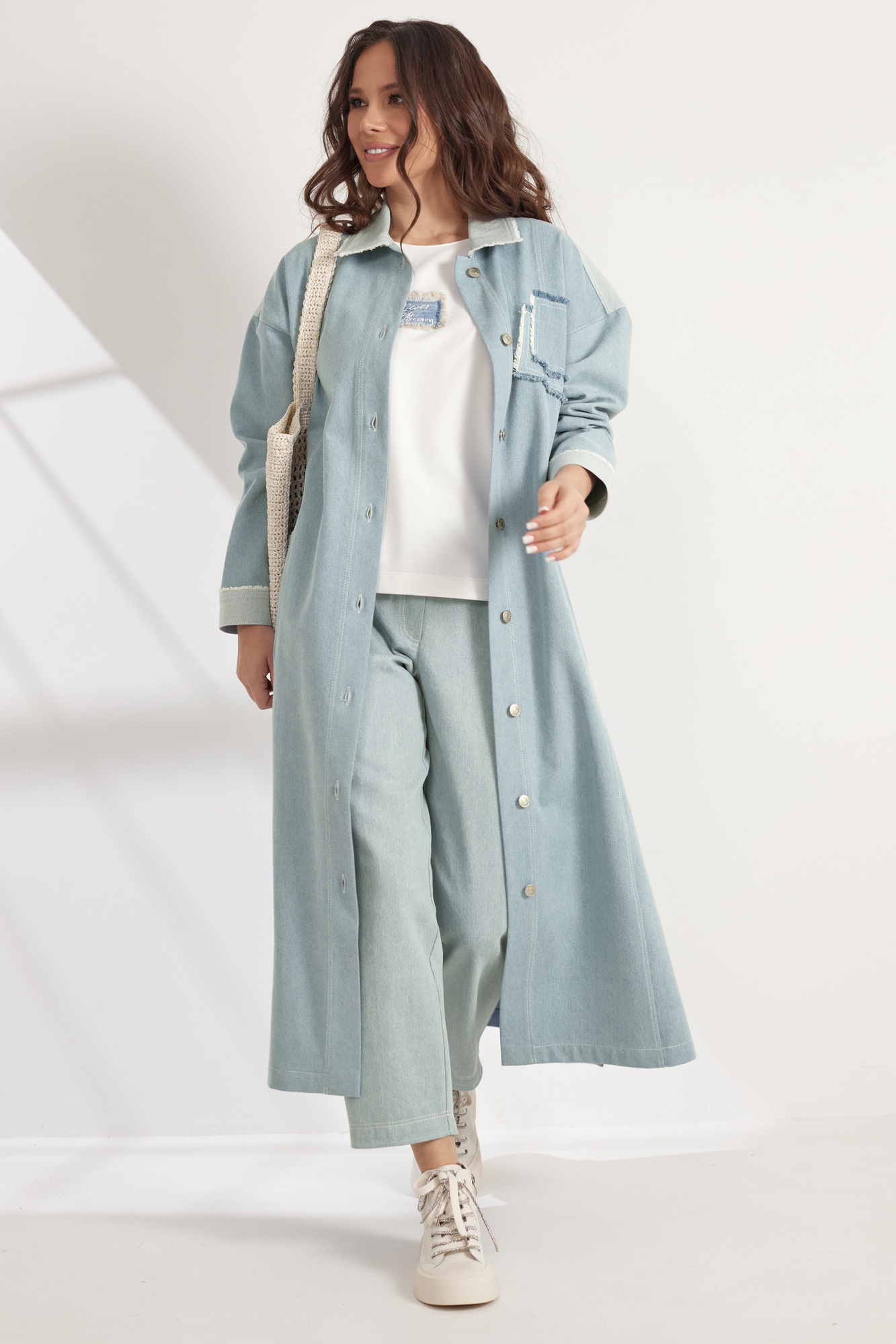 Тренч 2538 небесный Магия Моды — это стильное дополнение к вашему гардеробу. Коллекция бренда Магия Моды предлагает универсальный джинсовый плащ с длиной 125 см от плечевого шва, идеально подходящий для демисезонного времени. Он выполнен из 100% хлопка, что обеспечивает комфорт и простоту ухода. Свободный крой и съемный пояс из основной ткани добавляют изюминку в классический стиль. Центральная застежка на металлические пуговицы и удобные боковые карманы делают его практичным выбором. Спущенный рукав добавляет современный акцент, а небесный цвет освежит любой образ. Подходит для повседневных и офисных образов, подчеркивая ваш индивидуальный стиль.