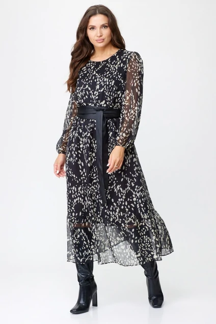 Платье 1023 графит от бренда Abbi подчеркнет вашу женственность и стиль. Коллекция бренда Abbi предлагает нарядное платье из легкого шифона с прозрачными элементами, которое идеально подходит для торжественных мероприятий. Материал сочетает в себе лёгкость и воздухопроницаемость, делая изделие комфортным для межсезонья и прохладных летних вечеров. Миди-длина и волан по низу подчеркивают изысканность дизайна, а пояс из эко-кожи добавляет акцент на талии. Графитовый цвет и принт делают платье универсальным для разных событий, будь то вечеринка или праздничный ужин. Округлый вырез горловины и втачные рукава завершает стильный образ.