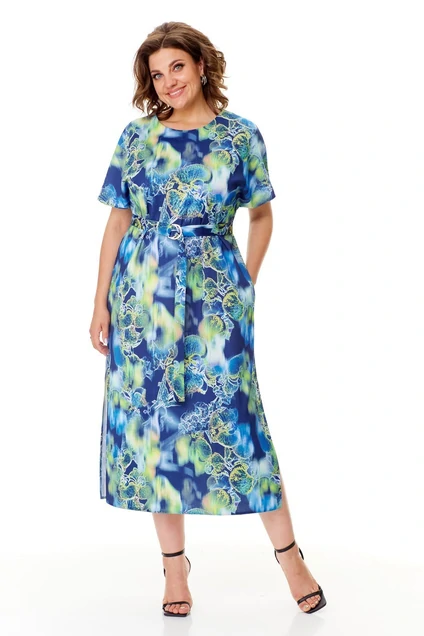 Ткань 3Д создает неповторимый эффект своим летним принтом. Ткань хоть и плотная и не просвечивается, однако легкая и дышащая, что позволяет одевать платье как в жаркий день, так и прохладным вечером.