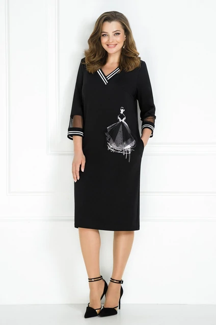 Стильное женское платье полуприлегающего силуэта, выполнено из высококачественной трикотажной ткани с добавлением вискозы (ткань мягкая, приятная к телу, хорошо тянется). Горловина платья с V-образным вырезом и отделкой из трикотажного довяза. Перед платья украшен стильной дизайнерской печатью Балерина и декорирован сеткой. В боковых швах платья функциональные карманы. Рукава декорированы вставкой из мягкой сетки и трикотажного довяза. Модель платья удобная и практичная, невероятно стройнит, прекрасно подойдет для ежедневной носки.