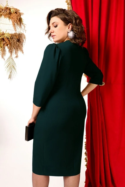 Роскошное нарядное платье, выполнено из плательной ткани Барби с добавлением вискозы. Платье полуприлегающего силуэта, с округлым вырезом горловины, рукав втачной, с небольшой сборкой по окату, длиной ¾. Особый шарм платью придает небольшой вырез у горловины, декорированный пришивной тесьмой. Низ платья по переду с разрезом. Модель стильная и практичная, невероятно стройнит, прекрасно подойдет для торжественного мероприятия, вы будете выглядеть неотразимо и роскошно.