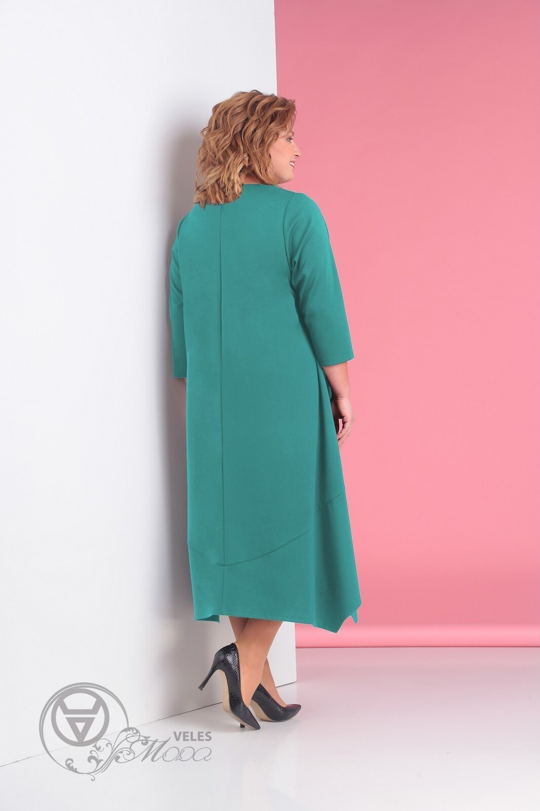 Ткань: трикотаж Цвет: морская волна Длина изделия (см): 119 Длина рукава (см): 48 Длинное платье А- образного силуэта из трикотажного полотна. Крой красиво акцентирует внимание на достоинствах фигуры и скрывает недостатки. На полочке обработан прорезной карман с листочкай. Горловина и съемный воротник, отлично выделяет платье и делает его ярче. Модель имеет втачной рукав .Подходит для девушек любого возраста, обеспечивает комфорт и легкость движениям, незаменима при создании модных динамичных образов в городском непринужденном стиле. На рост 164-170 см.