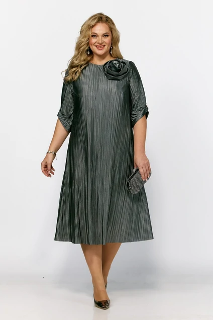 Каждая женщина хочет быть красиво одетой и выглядеть элегантно, ощущая при этом комфорт. Платье из ткани плиссе поможет Вам воплотить задуманное в реальность: оно легкое, удобное в носке, выполнено из мягкой, тонкой и шелковистой ткани, приятной к телу. Легкое винтажное платье с подкладом, обеспечивающим дополнительную защиту от просвечивания, будет уместно в любое время года за счет своей длины миди и свободных рукавов. По спинке, на горловине, обработана капелька на навесную петлю и пуговицу. Рукав втачной, длиной 3/4 с фигурным низом с односторонними складками, с притачной манжетой. Платье декорировано съемным цвкетком. А для тех, кто хочет подчеркнуть линию талии и сделать силуэт слегка облегающим – этого легко добиться, добавив пояс из своего гардероба. Однотонное платье сочетается с различными аксессуарами и обувью, позволяя Вам собрать множество новых уникальных вариантов носки. Этот наряд будет отличным выбором для мамы или подружек невесты на свадьбу, ведь он сочетает в себе элементы винтажного стиля с современными модными трендами.