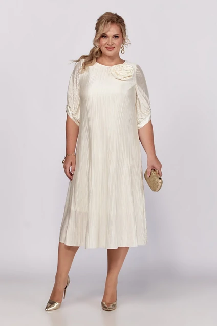 Каждая женщина хочет быть красиво одетой и выглядеть элегантно, ощущая при этом комфорт. Платье из ткани плиссе поможет Вам воплотить задуманное в реальность: оно легкое, удобное в носке, выполнено из мягкой, тонкой и шелковистой ткани, приятной к телу. Легкое винтажное платье с подкладом, обеспечивающим дополнительную защиту от просвечивания, будет уместно в любое время года за счет своей длины миди и свободных рукавов. По спинке, на горловине, обработана капелька на навесную петлю и пуговицу. Рукав втачной, длиной 3/4 с фигурным низом с односторонними складками, с притачной манжетой. Платье декорировано съемным цвкетком. А для тех, кто хочет подчеркнуть линию талии и сделать силуэт слегка облегающим – этого легко добиться, добавив пояс из своего гардероба. Однотонное платье сочетается с различными аксессуарами и обувью, позволяя Вам собрать множество новых уникальных вариантов носки. Этот наряд будет отличным выбором для мамы или подружек невесты на свадьбу, ведь он сочетает в себе элементы винтажного стиля с современными модными трендами.