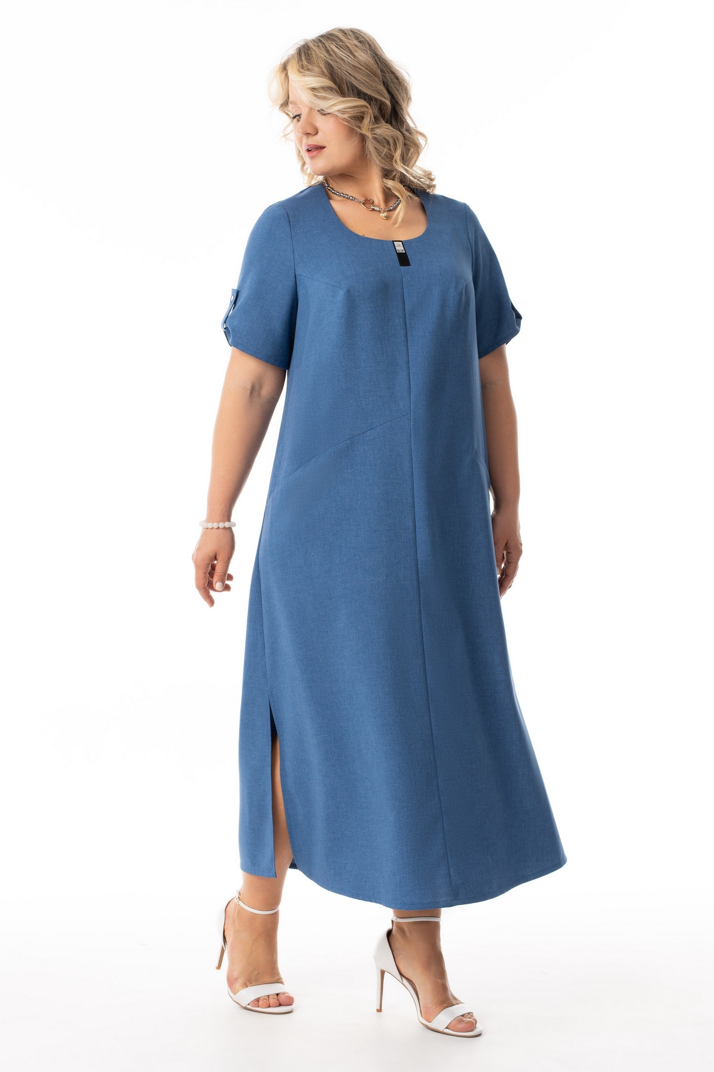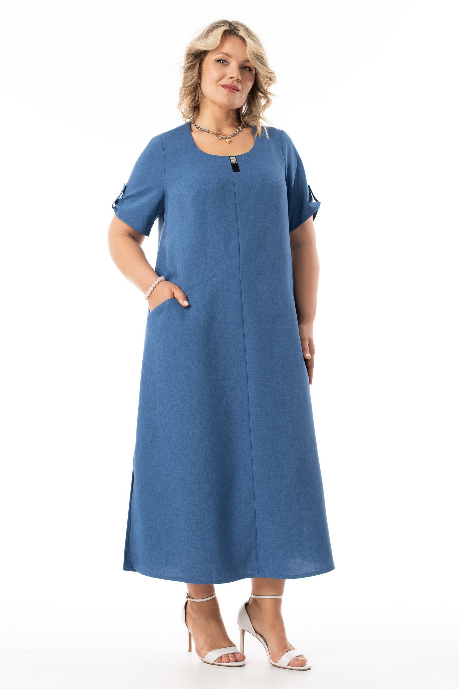 Платье 4156-с Algranda добавляет вашему гардеробу стиль и комфорт. Коллекция бренда Новелла Шарм предлагает это летнее платье А-силуэта, выполненное из плательной ткани лен-вишер. Материал позволяет коже дышать и обеспечивает приятные ощущения в жаркие дни. Платье обладает асимметричным дизайном с диагональными подрезами, которые фрагментируют фигуру и добавляют легкость в образ. Функциональные боковые карманы и короткие рукава с патой и пуговицей обеспечивают практичность и стиль. Платье выполнено в классическом стиле и подходит для создания как делового, так и вечернего образа. Насыщенный синий цвет делает его универсальным, идеально подходящим для любого случая, будь то повседневное ношение или вечерняя прогулка.