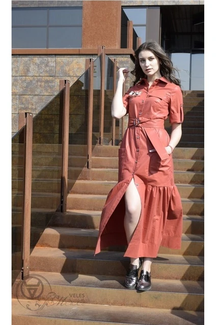 Длинное трендовое платье с расстёжкой до низа из натурального хлопка со слегка заметным глянцевым блеском по лицевой поверхности.В комплекте идёт пояс и дизайнерский съёмный шеврон.Длина изделия на рост 164-128см, на рост 170-135 см.