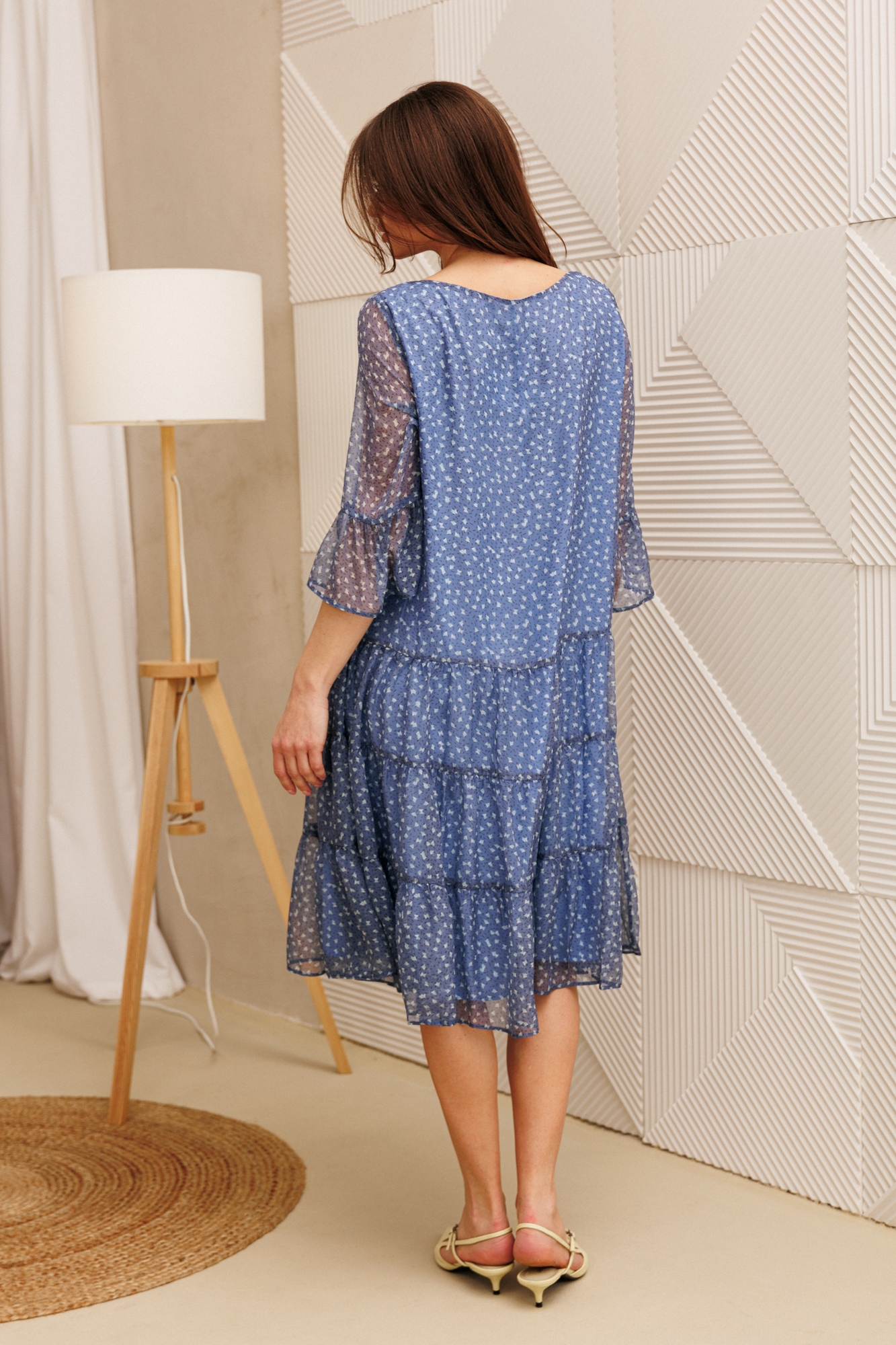 Платье 1110 голубой Anastasia от бренда Anastasia — это воплощение легкости и стиля. Коллекция бренда предлагает шифоновое платье, выполненное из легкого и воздушного материала, который обеспечивает комфорт в любой ситуации. Трапециевидный фасон с воланами создает романтичный и свободный силуэт, подходящий для любой фигуры. Расширенные рукава 3/4 добавляют изюминку к общему образу, делая его идеальным выбором для офисной работы, прогулок или торжественных мероприятий. Изящный голубой фон с цветочным принтом придает платью свежесть, а его универсальный стиль позволяет носить его как в повседневной жизни, так и на особенные события. Компонуйте его как с сапогами, так и с босоножками для создания уникального образа на каждый день.