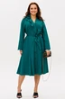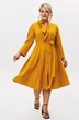 Элегантное женское палтье из натуральной ткани (лен, хлопок) необычного кроя станет изюминкой вашего гардероба. Платье прилегающего силуэта, отрезное по линии талии, по передеу застежка на петли и пуговицы, в верхней части платья по полочке прилегание создается за счет талиевых выточек, по спинке - за счет резинки по линии талии. Юбка-полусолнце с односторонними складками, по бокам карманы. Плечо спущенное, рукав укороченный, на высокой манжете на одну пуговицу. Горловина по полочке выполненна в виде цельнокроеной стойки, переходящей в отрезную по спинке. В качестве декора по краю борта идет жабо, переходящее в цветок. . В комплекте съемный пояс в тон платья. Длина по спинке:-111см. Длина рукава с манжето -51см.